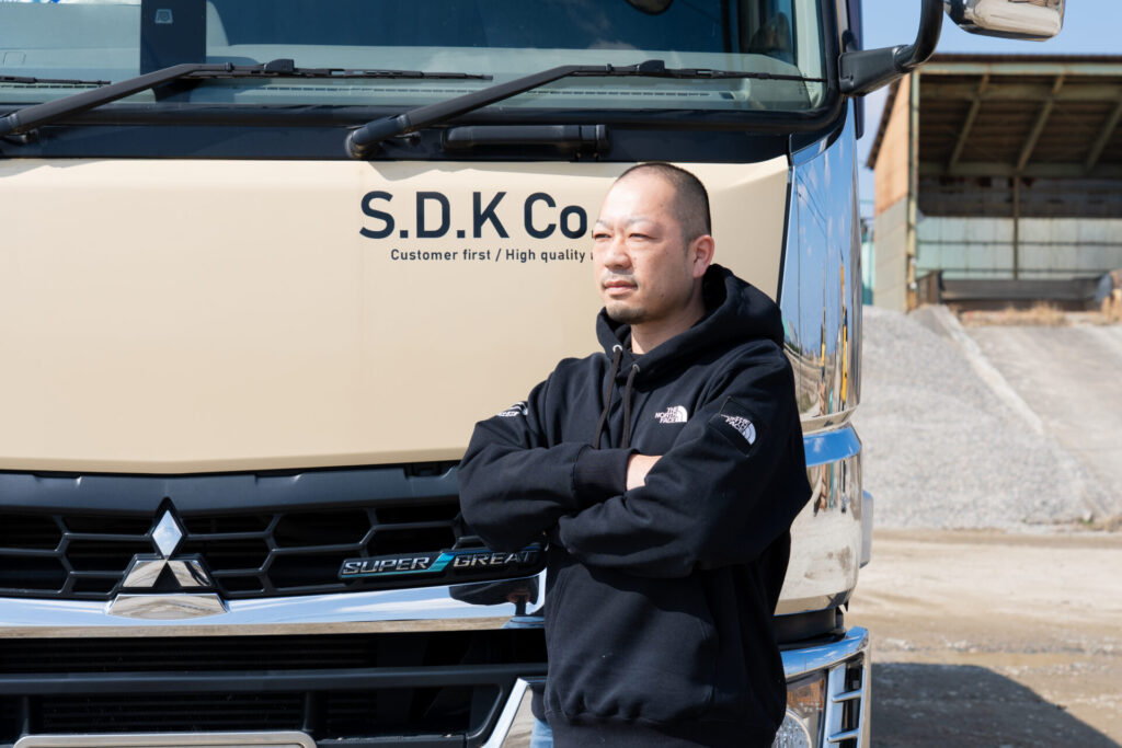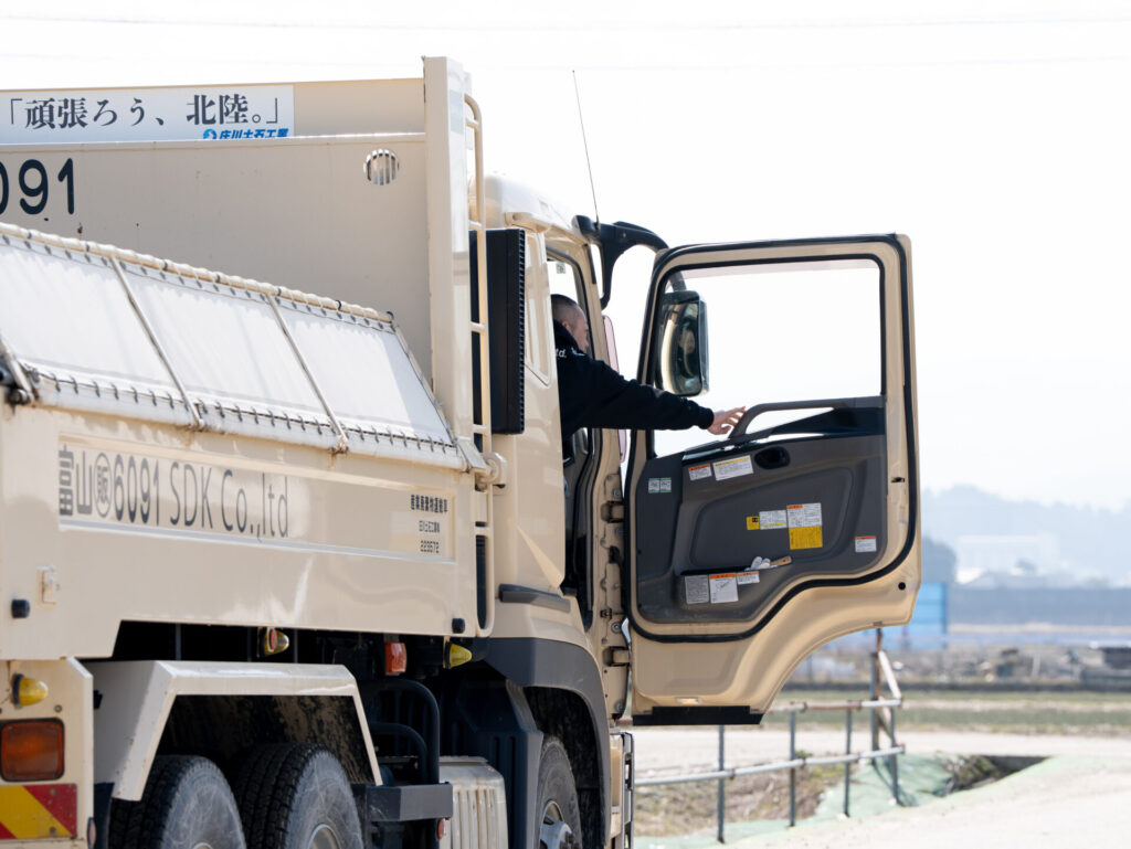 主な仕事内容はダンプカーでの建築資材等の運搬です。私の仕事におけるやりがいは、社会への貢献を実感できることにあります。特に印象に残っている仕事は、能登の震災における復旧支援です。災害の光景を思い出すと今でも胸が苦しくなります。少しでも被災された方たちの助けになるようにとダンプカーを走らせたことを覚えています。
